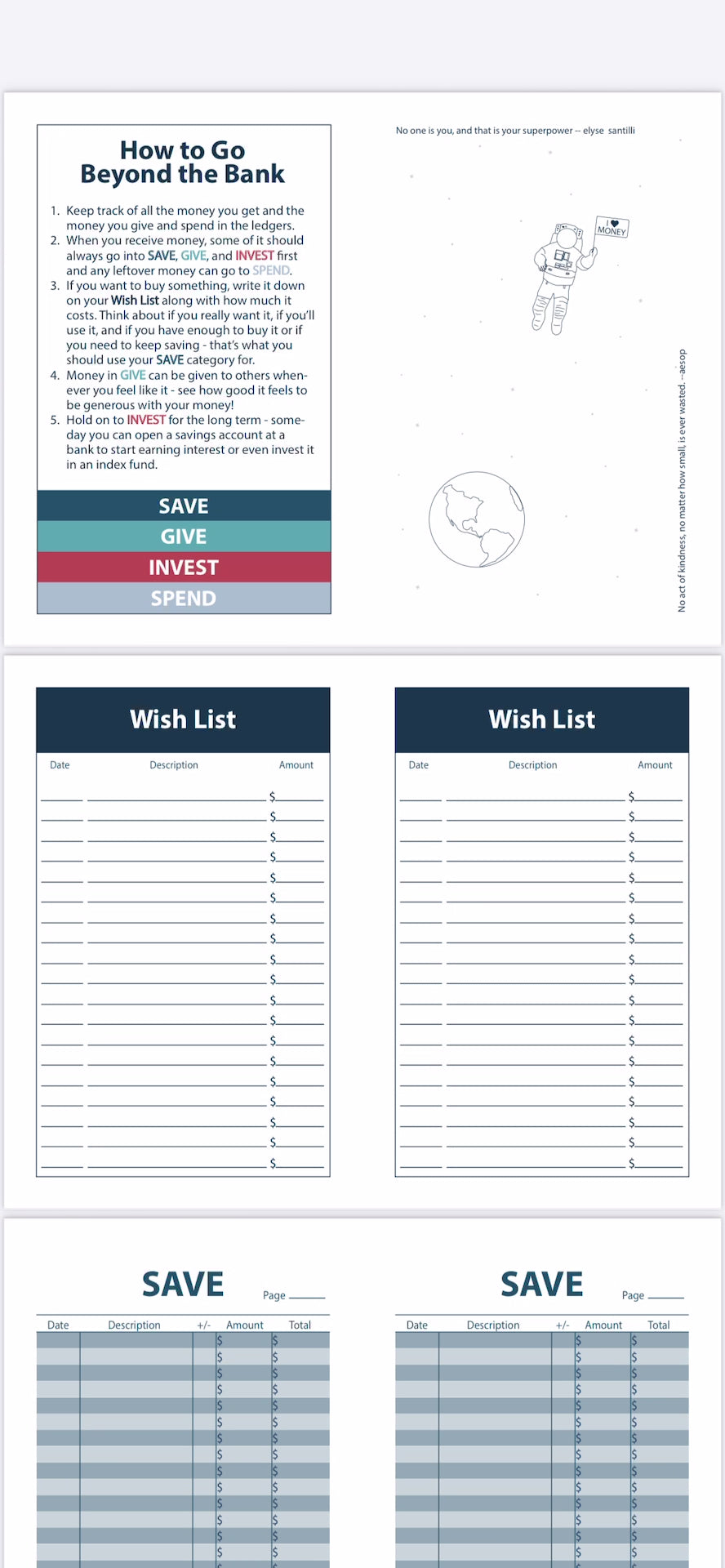 - Use them to create your own money management system - put them in a mini-binder along with zipper pouches or staple together and use with a jar system